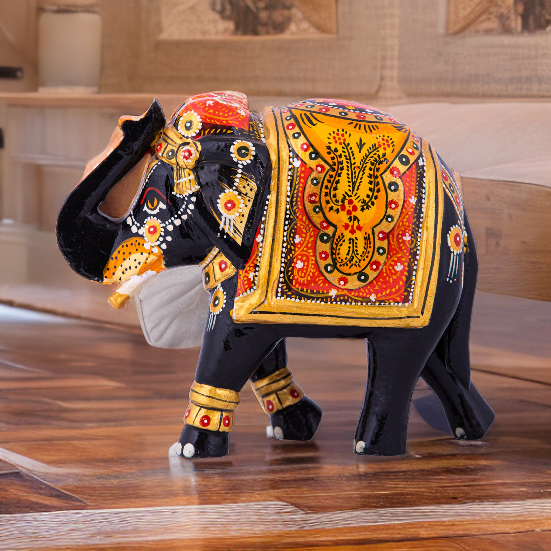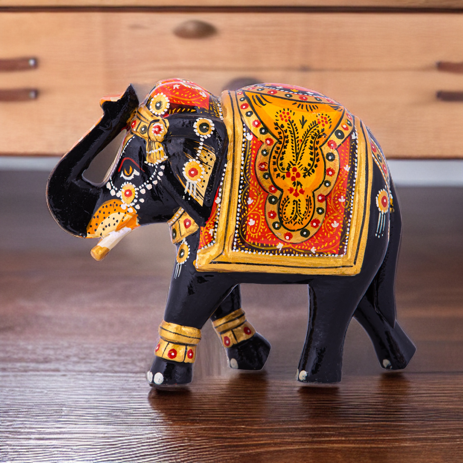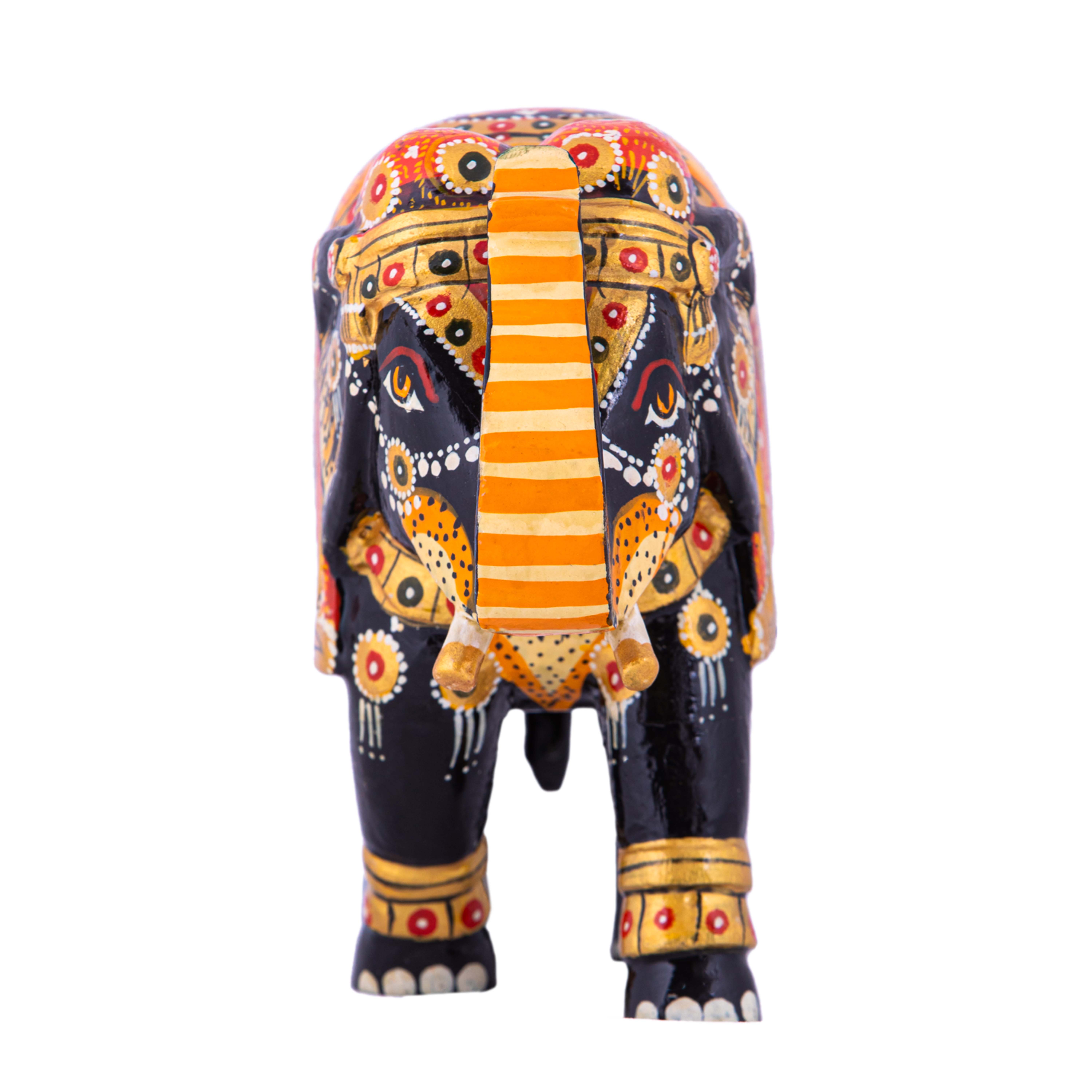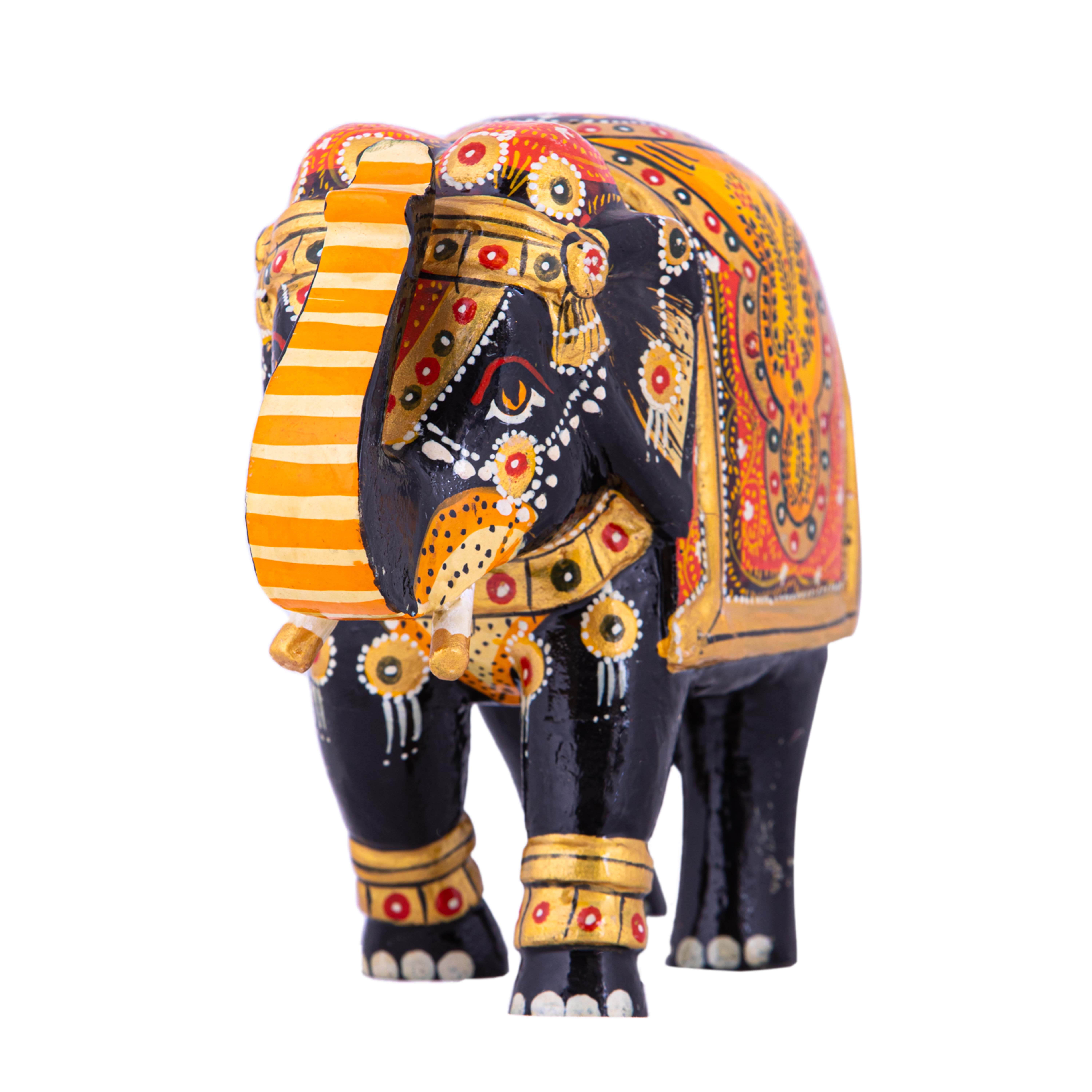 Discover the exquisite craftsmanship of our medium-sized handcrafted black wood elephant, a true masterpiece of elegance and artistry.