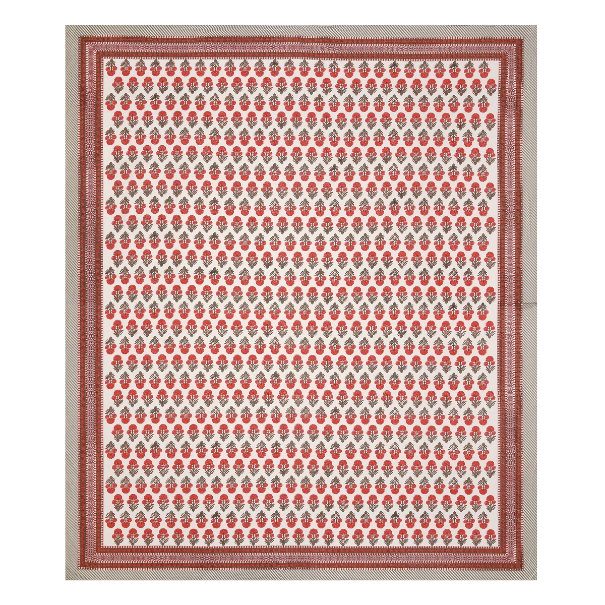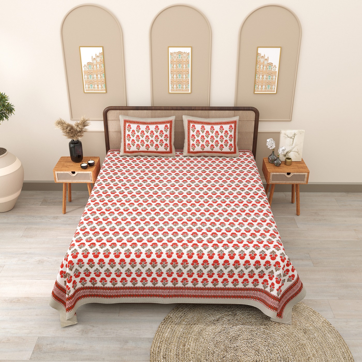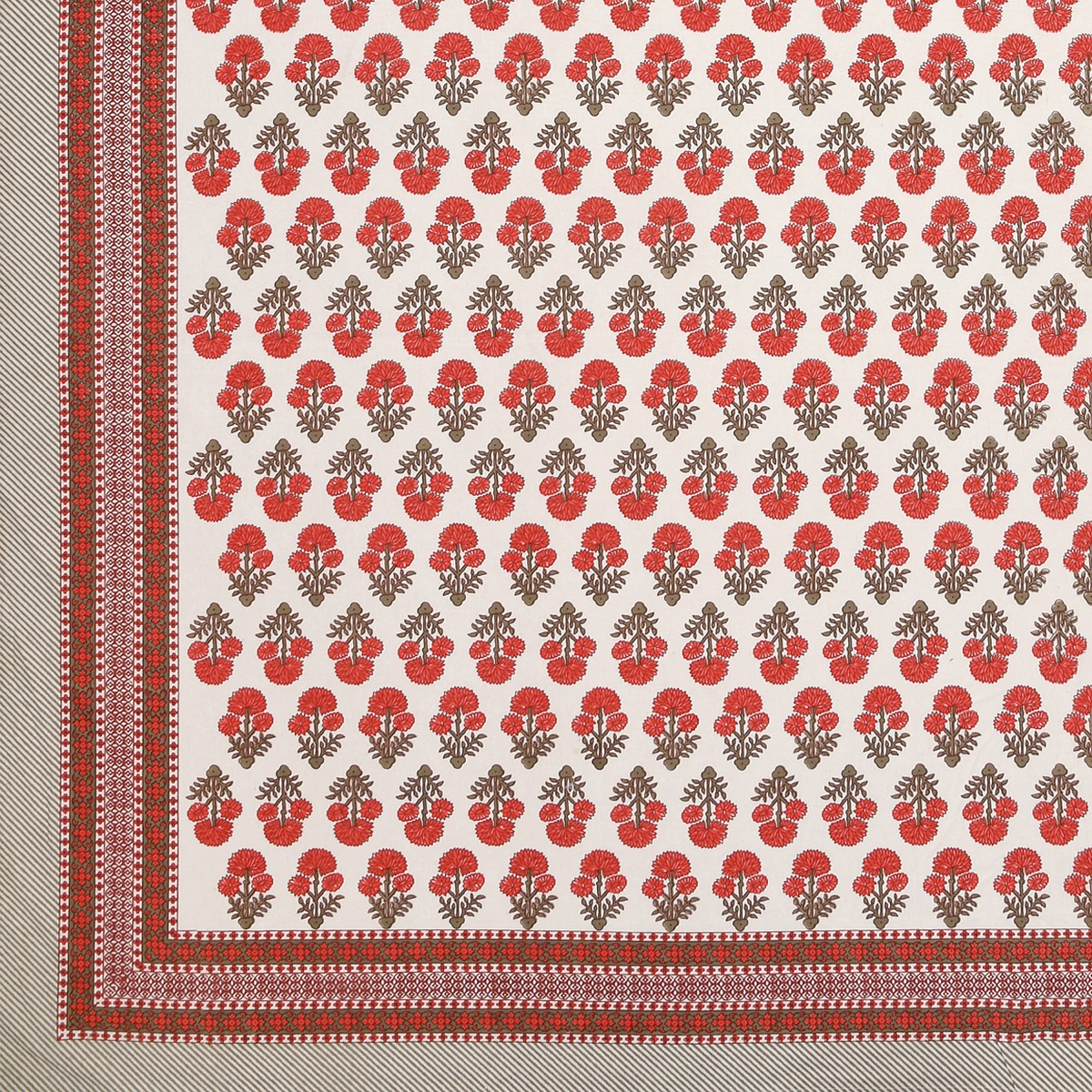 Enhance your bedding with the elegance of our Red flower bouquet with striped border Queen Size Bedsheet Set, featuring a charming design for a luxurious and cozy sleeping experience.