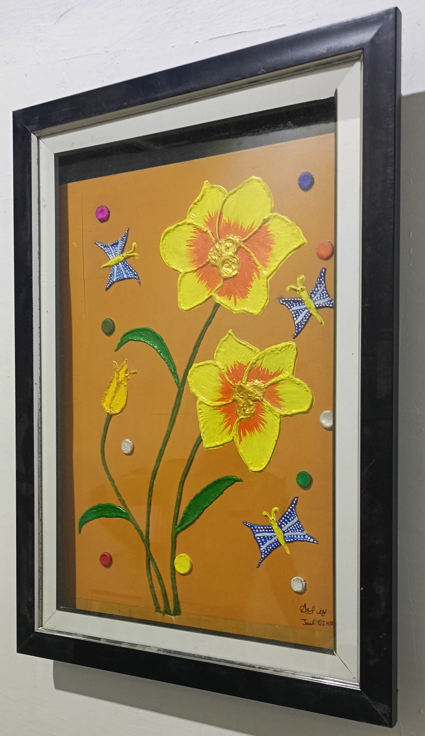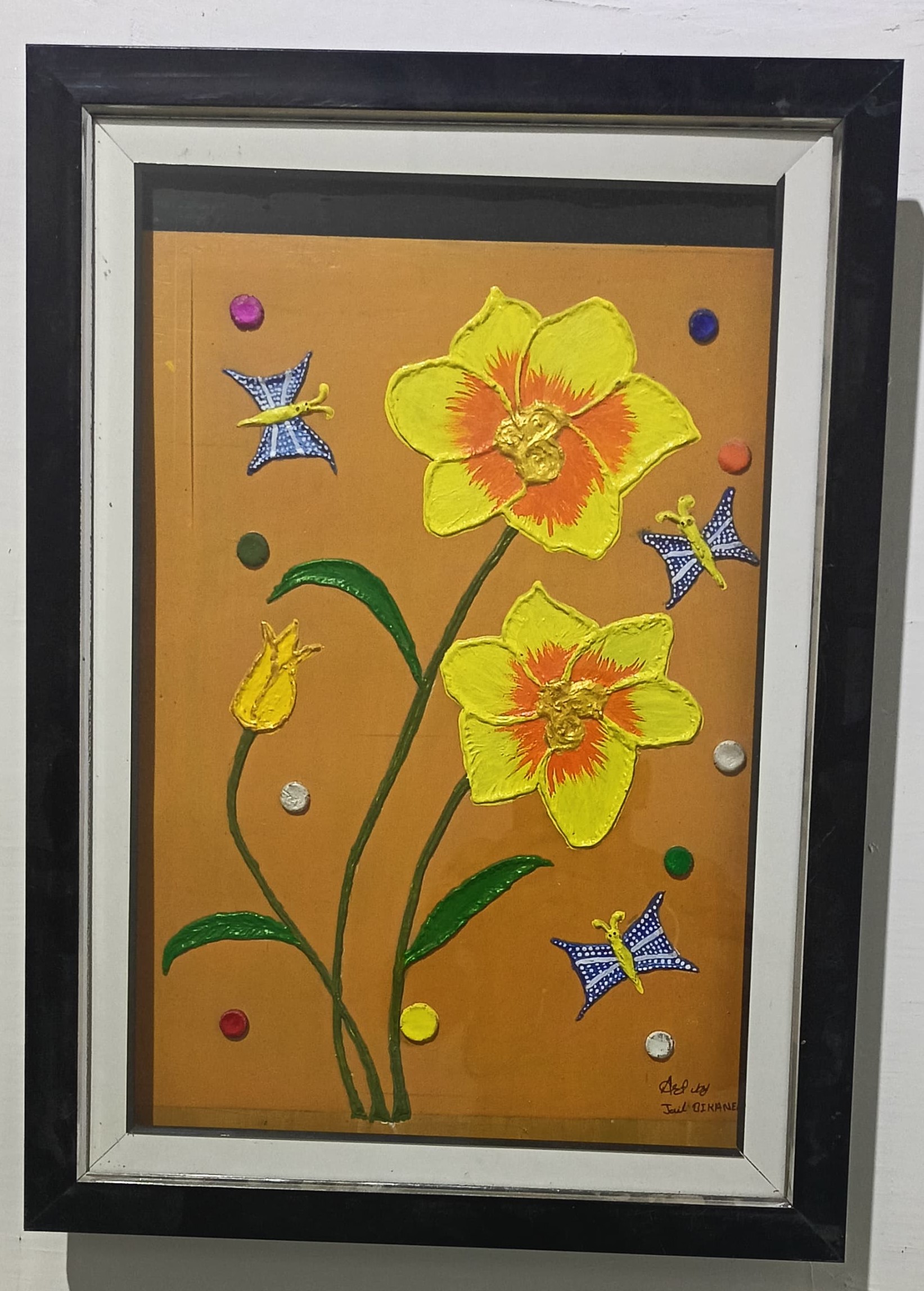 Handicraft Modern Art Painting Flower (Medium Size Yellow Colour)