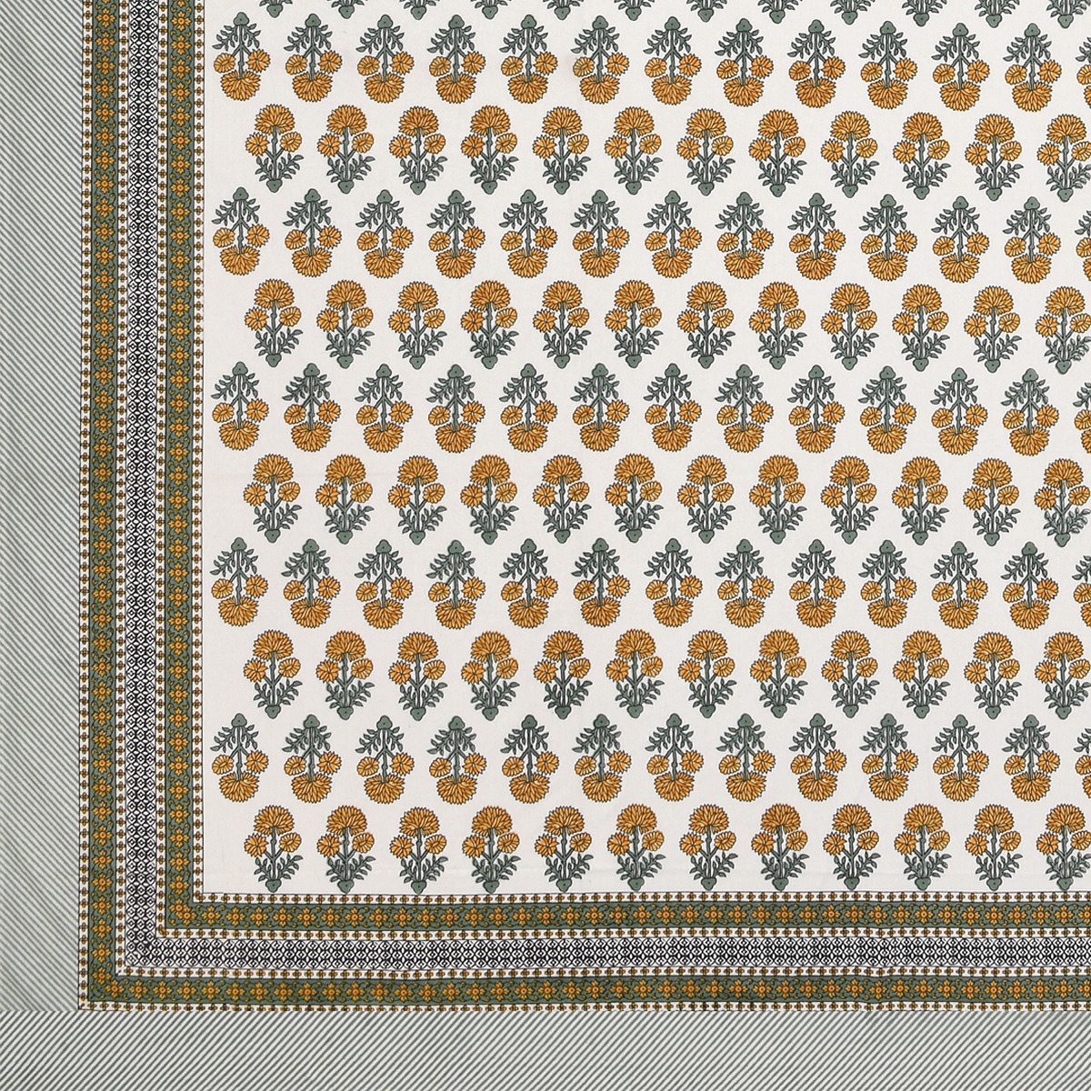 Experience luxury and affordability with our Yellow flower bouquet with striped border Queen Size Bedsheet, available online for a comfortable and stylish bedding upgrade.