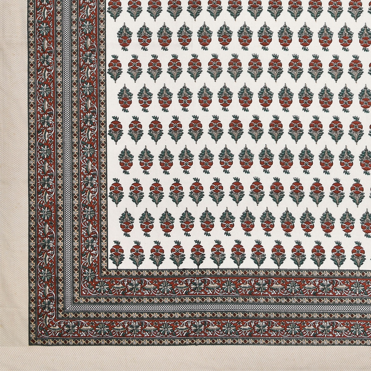 Experience the comfort of our Maroon Grey Pansy with Brown Border Queen Size Bedsheet, made from pure cotton for a luxurious sleep.