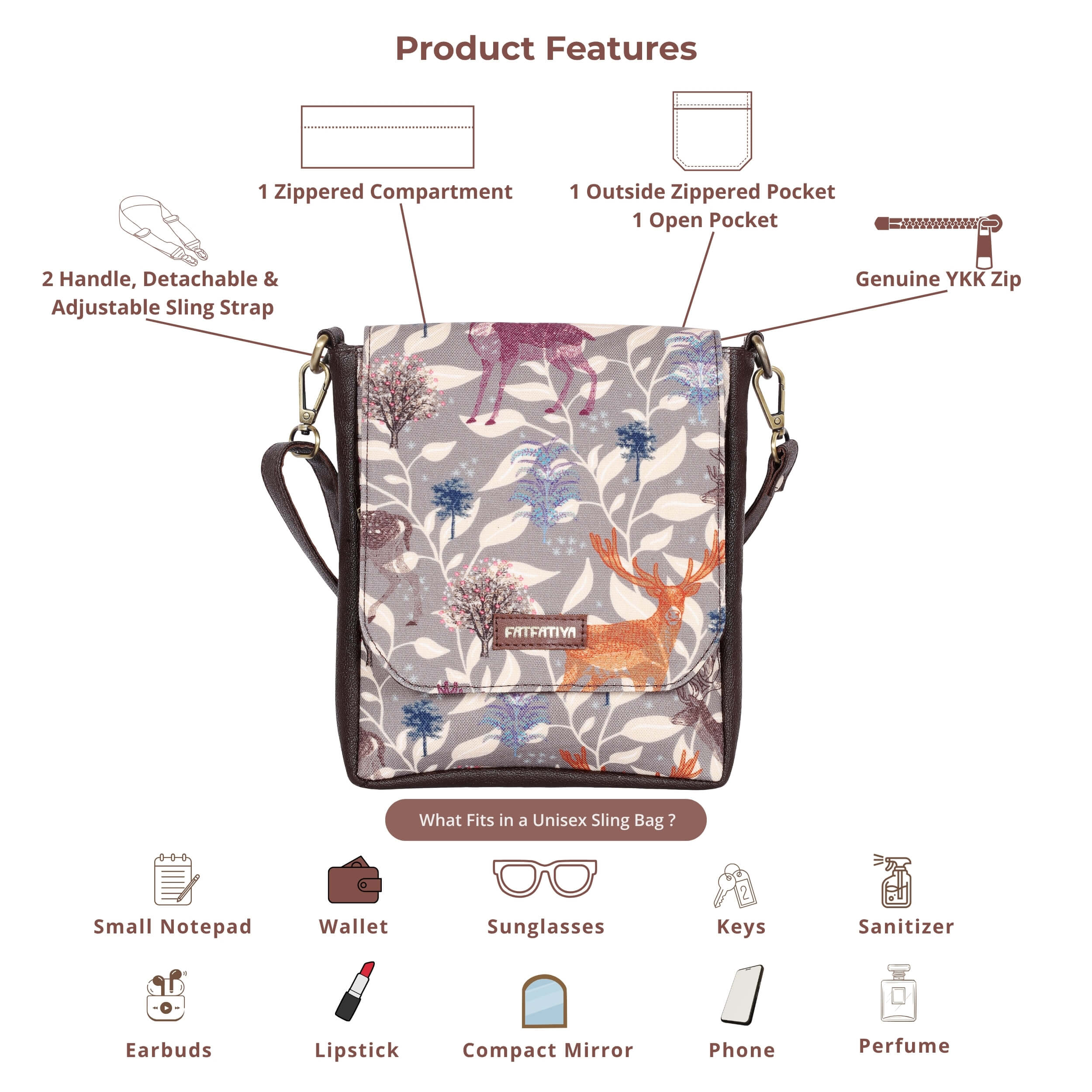 FOREST-INSPIRED PRINT UNISEX SLING BAG