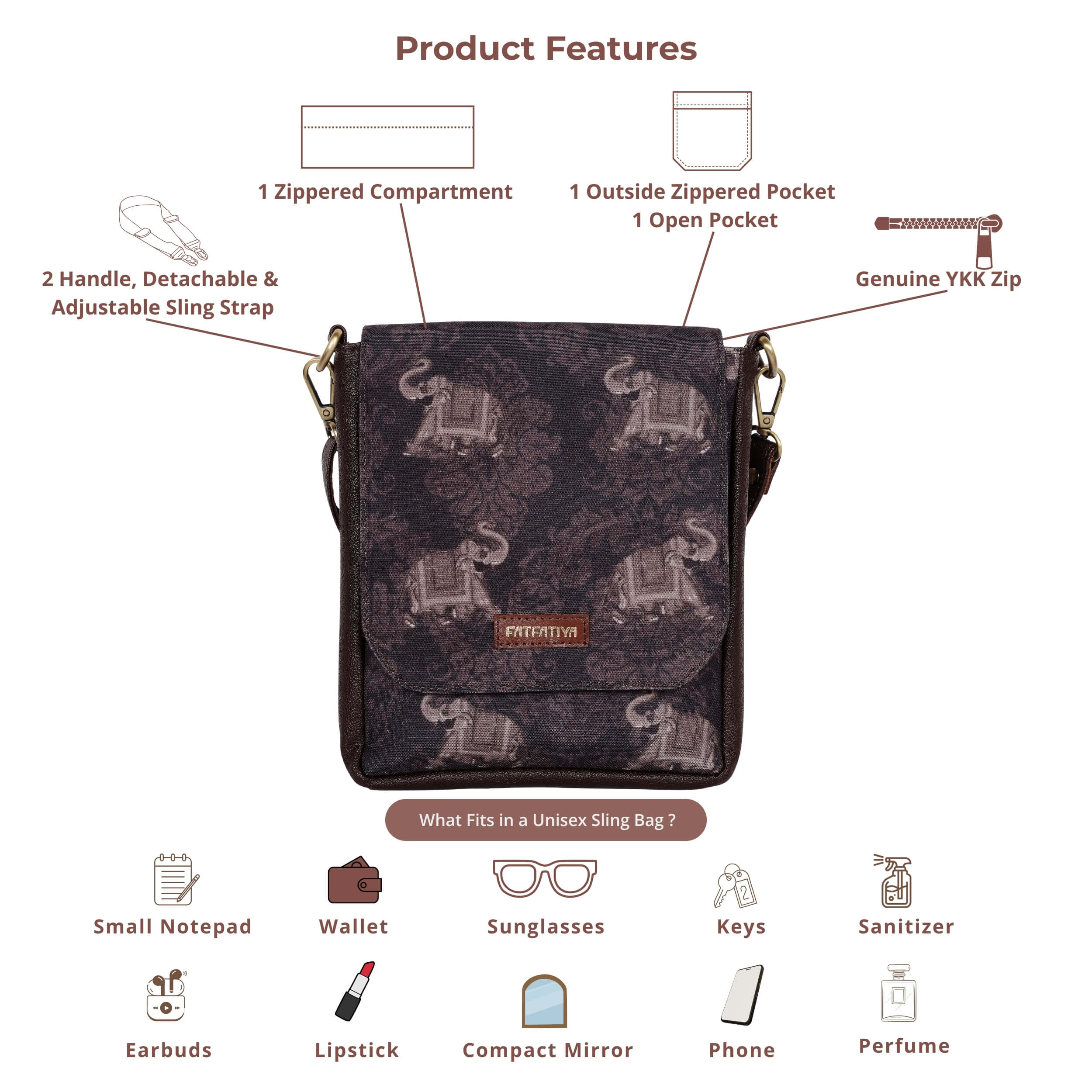 ELEPHANT MOTIF UNISEX SLING BAG