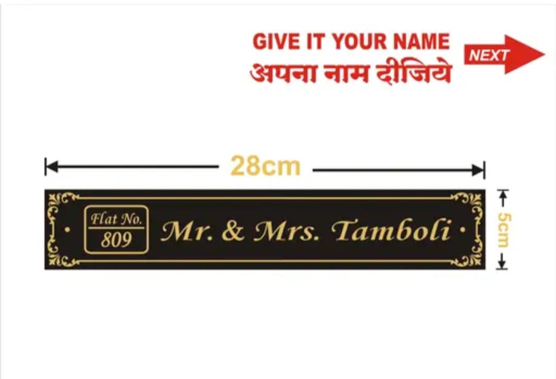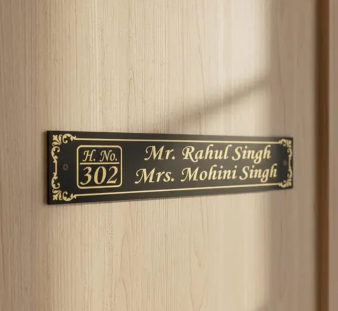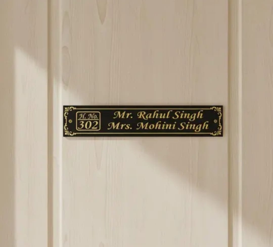 PERSONALIZED NAME PLATE FOR HOME – PREMIUM BLACK & GOLD FINISH (11 X 2 INCHES)